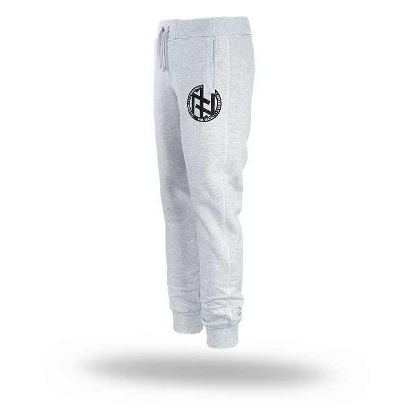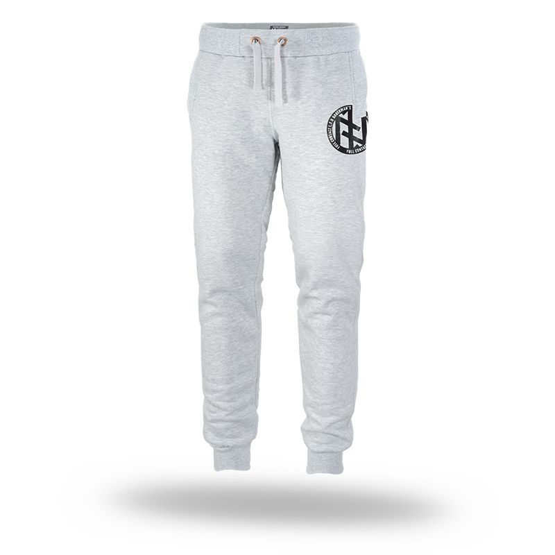 Bavlnené teplákové nohavice s dvoma bočnými vreckami a rovnými nohavicami. V páse elastický sťahovací lem a šnúrky. Na prednej strane ľavej nohavice jednofarebná potlač s runovými znakmi umiestnený pod vreckom. Dookola označenie Full Contact L.T.D Doberman's. Športová kolekcia Doberman's Aggressive.