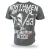 Štandardné bavlnené pánske tričko s krátkym rukávom a sťahovacím lemom pri krku. Na ľavom rukáve je nášivka s logom značky Dobermans Aggressive. Pozdĺž ľavého ramena je potlač s nápisom a s rúnovými symbolmi. Na zadnej strane trička je vzor zobrazujúce helmu a dve skrížené sekery, v pozadí rok 793. Vyššie je text Northmen Invader.