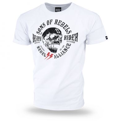 Klasické bavlnené tričko s úzkym sťahovacím lemom pri krku. Tričko je vyrobené z vysoko kvalitnej bavlny s hmotnosťou 200g. Vo vnútri a na ľavom rukáve je malá nášivka s logom Dobermans Aggressive. Na hrudi je potlač v podobe kruhu s lebkou a blesky. Okolo sú heslá Sons of Rebels a Rebel Alliance. Na zadnej strane pri krku sa opakuje potlač v menšom formáte.