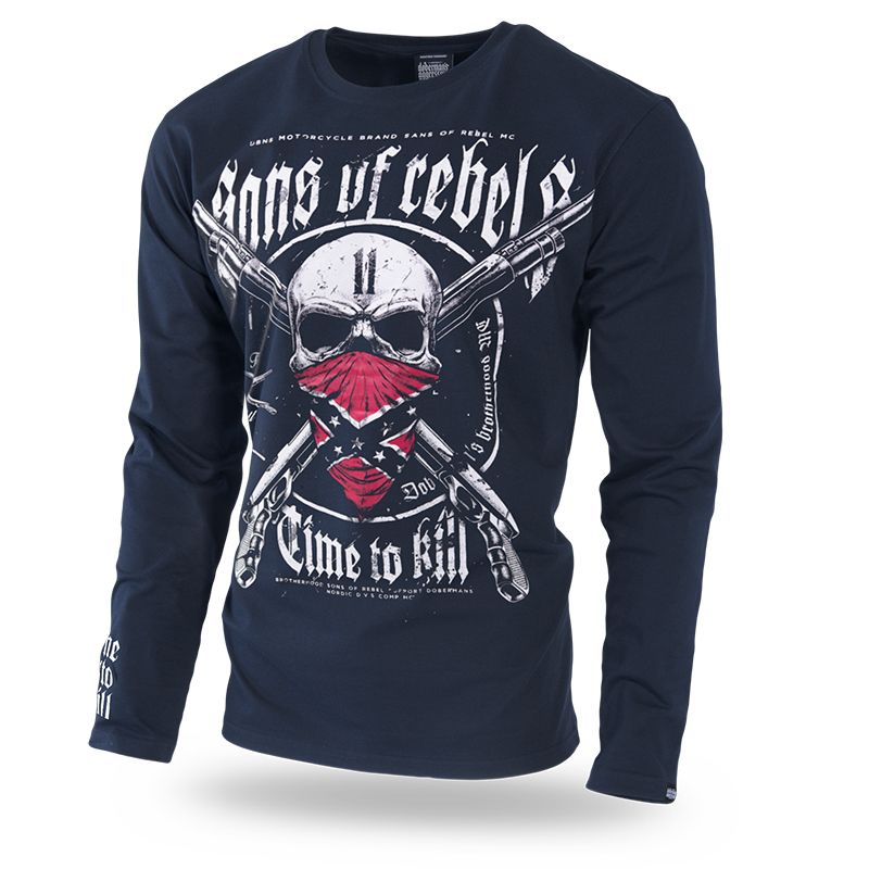 Klasické pánske tričko s dlhým rukávom, pri krku s úzkym sťahovacím lemom. Tričko s dlhým rukávom je vyrobené z vysoko kvalitnej bavlny. Tričko je z kolekcie SONS OF REBEL, zobrazujúce lebku s konfederačnou čiapkou. V pozadí sú dve brokovnice a nápisy v gotickom štýle. Na ľavej prednej strane je nápis Time to Kill a tiež logo značky.