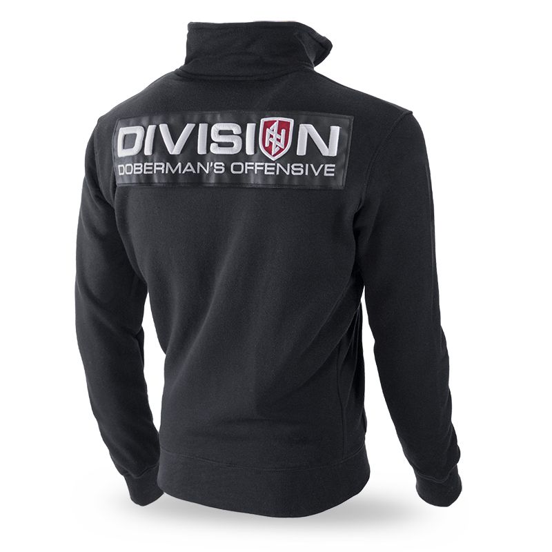 Klasická pánska mikina na zips z vysoko kvalitnej bavlny, so stojačikom a sťahovacími lemy. Mikina je ďalšou ponukou z radu DIVISION. Mikina má na chrbte čiernu nášivku s 3D výšivkou "DIVISION Doberman 's Offensive". Na prednej strane mikiny sa nachádza malá nášivka v tvare štítu v podobe 3D loga.