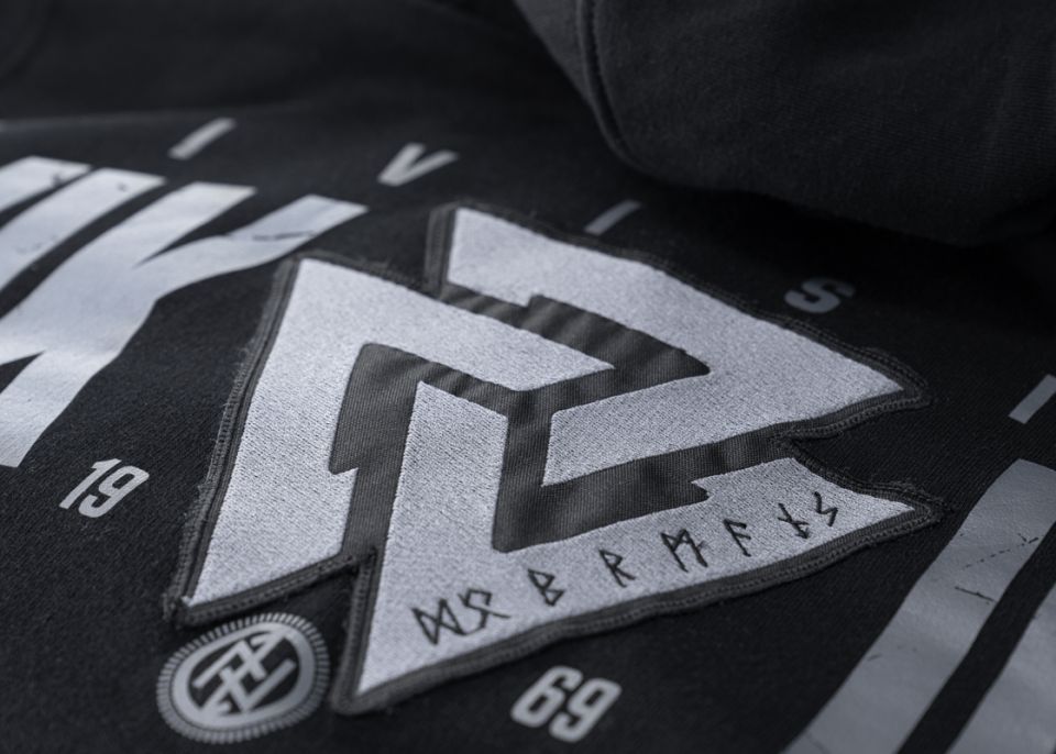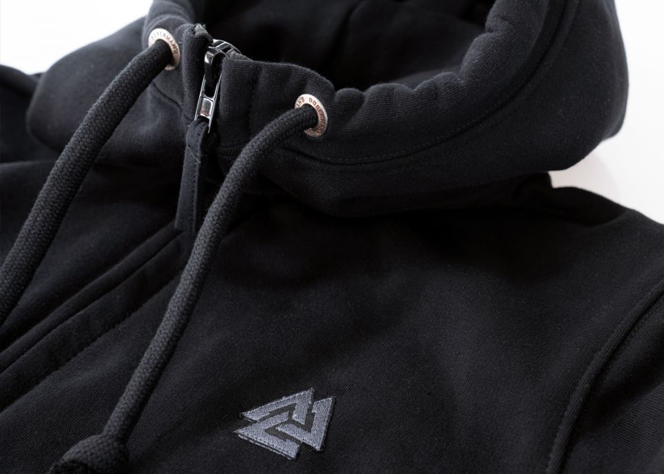 Mikina s kapucňou so zapínaním na zips je zateplená vrstvou kožuchu. Mikina je vyrobená z vysoko kvalitnej bavlny, zakončená sťahovacími lemy a s dvoma vreckami na prednej strane. Kapucňa je ozdobená širokou šnúrkou a kovovými zakončeniami s logom značky. Mikina zo série Valknut jej inšpirovaná severskou symbolikou. Zadná časť mikiny je zdobená kombináciou vyšívaného symbolu Valknut a potlače Viking Division. Na ľavej strane hrudi je miniatúra škandinávskeho symbolu.