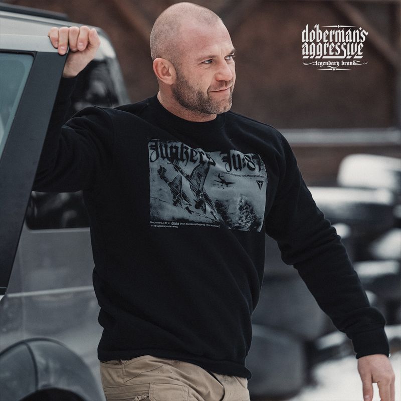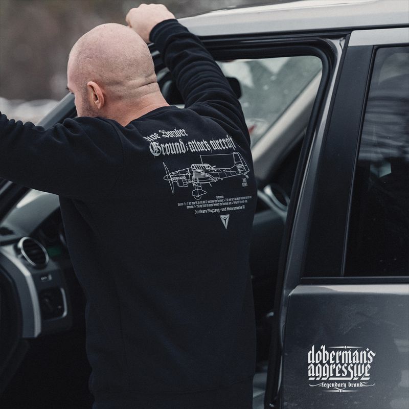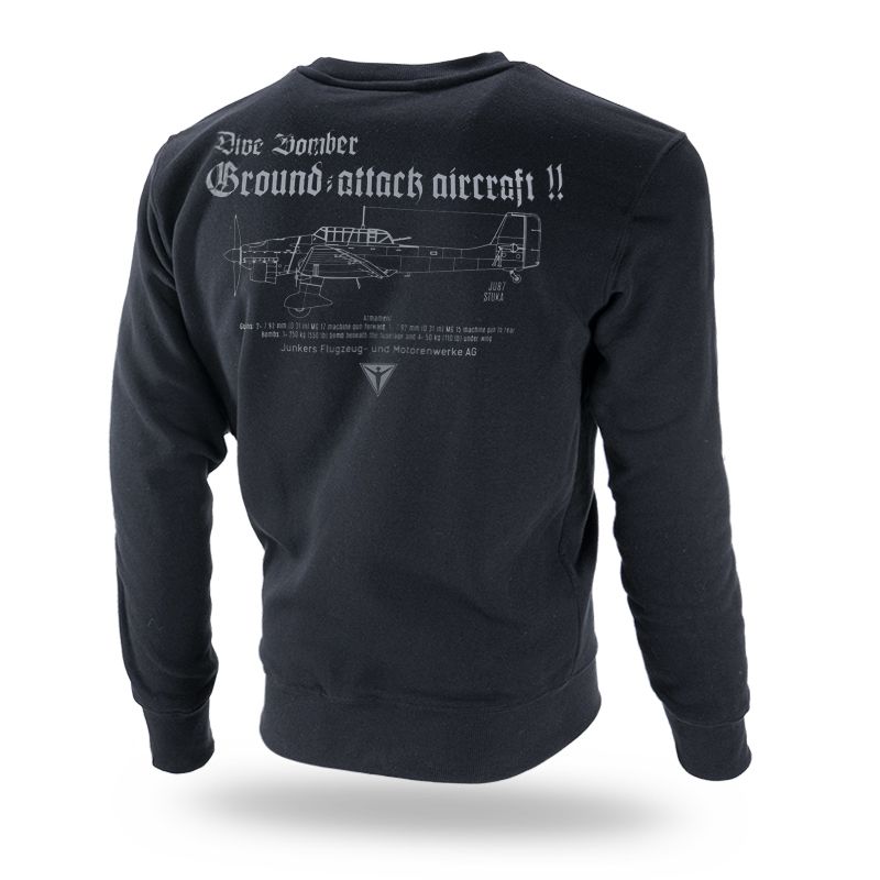 Klasická pánska mikina. Na ľavom rukáve je malá ceduľka s logom značky. Dolná časť mikiny a rukáve sú zakončená širokým sťahovacím lemom. Potlač na prednej strane zobrazuje bombardéry Ju87 z 2.svetovej vojny. Na zadnej strane sa nachádza nákres lietadla s popisom výzbroje.