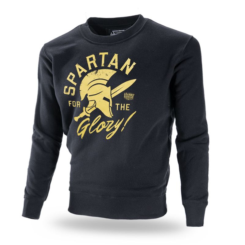 Klasická pánska mikina. Na ľavom rukáve je malá ceduľka s logom značky. Dolná časť mikiny a rukáve sú zakončená širokým sťahovacím lemom. Potlač na prsiach s jasným odkazom "SPARTAN FOR THE GLORY!" dopĺňa vzadu malú potlač SPARTAN s mečom.