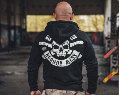 Mikina s kapucňou od Dobermans Aggressive je vyrobená z príjemnej, pohodlnej bavlny, zakončená širokými, elastickými sťahovacími lemy v páse, tak aj na rukávoch. Vpredu a vzadu potlač Machete - Bloody Mess.