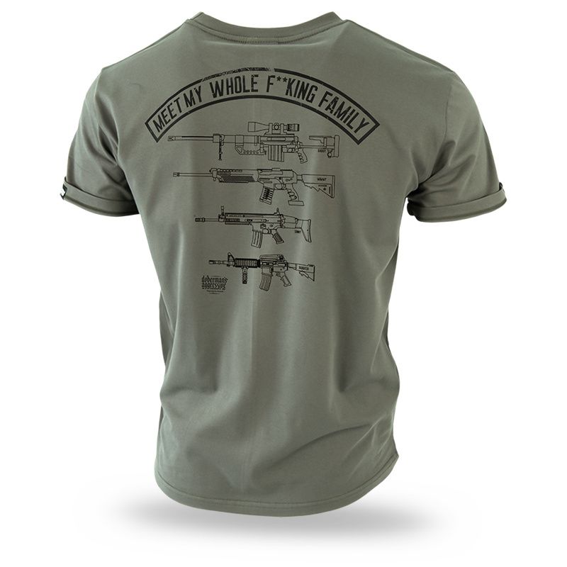 Pánske tričko zo 100% bavlny klasického strihu s krátkym rukávom. Na ľavom rukáve je umiestnená malá ceduľka s logom značky. Vpredu a vzadu potlač "Meet my whole f**cking family".
