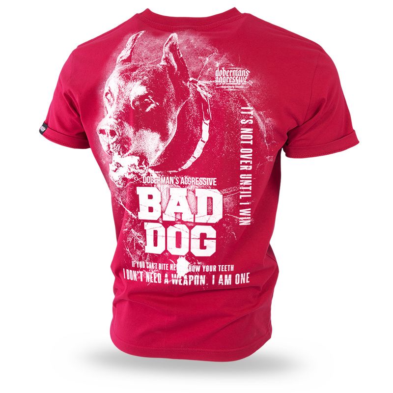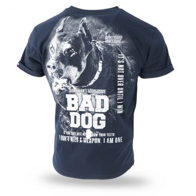 Pánske tričko zo 100% bavlny klasického strihu s krátkym rukávom. Na ľavom rukáve je umiestnená malá ceduľka s logom značky. Ako je už pre značku Doberman´s Aggressive typické, na chrbte sa nachádza veľká potlač "Mad Dog".