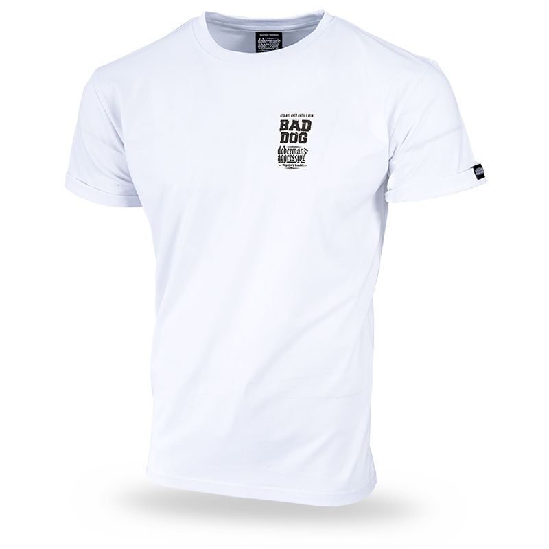 Pánske tričko zo 100% bavlny klasického strihu s krátkym rukávom. Na ľavom rukáve je umiestnená malá ceduľka s logom značky. Ako je už pre značku Doberman´s Aggressive typické, na chrbte sa nachádza veľká potlač "Mad Dog".