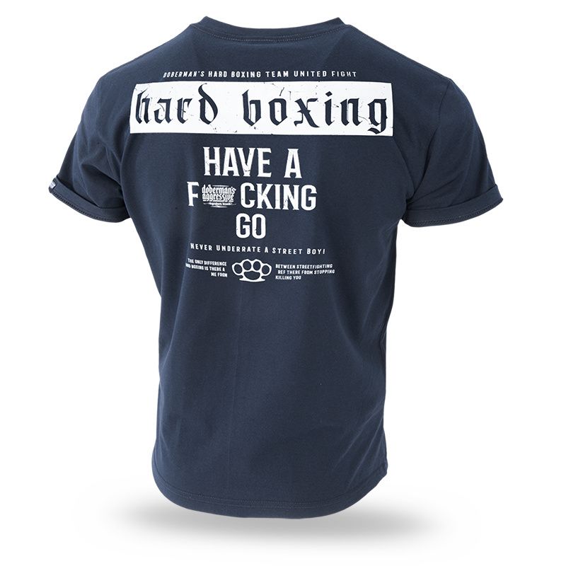 Pánske tričko zo 100% bavlny klasického strihu s krátkym rukávom. Na ľavom rukáve je umiestnená malá ceduľka s logom značky. Vpredu a vzadu potlač Hard Boxing.