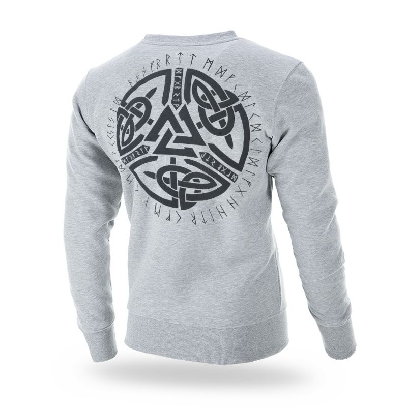 Pánska mikina obliekaná cez hlavu. Na ľavom rukáve je malá ceduľka s logom značky. Dolná časť mikiny a rukávov je zakončená širokým sťahovacím lemom. Na prednej strane je malá vyšívaná nášivka so severským symbolom. Zadnú stranu zdobí veľká grafika v severskom štýle vyrobená metódou konvexnej tlače.