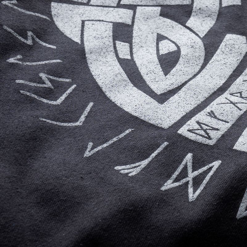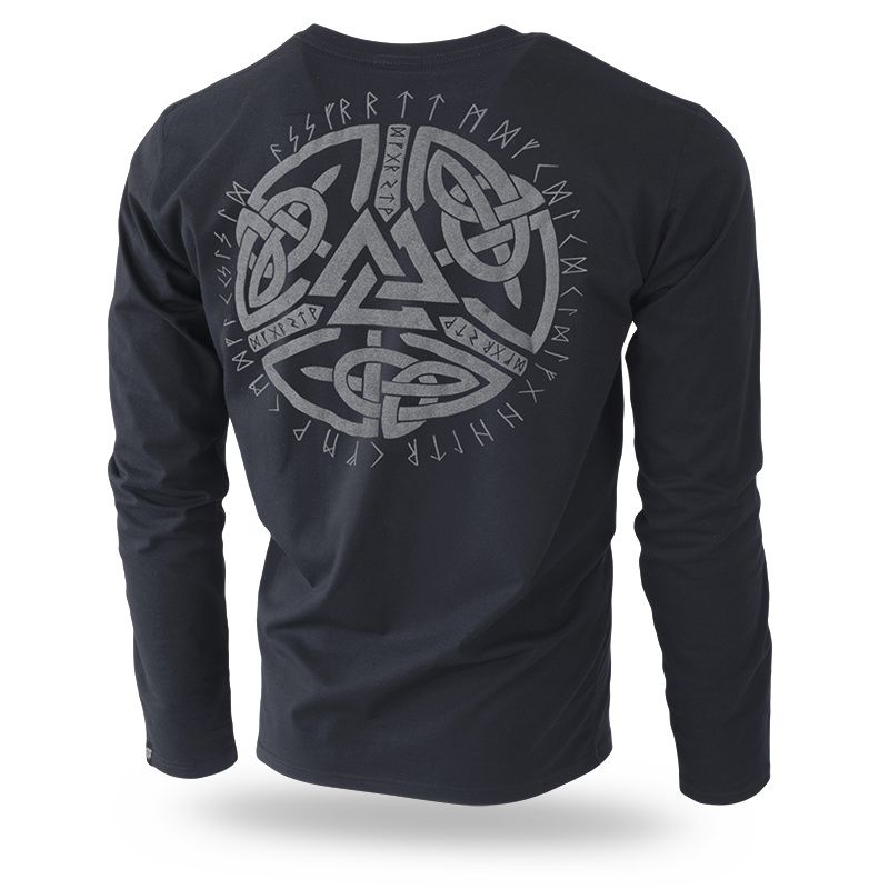 Klasické pánske tričko s dlhým rukávom zo 100% bavlny zakončené širokým sťahovacím lemom pri krku. Na prednej strane je malá vyšívaná nášivka so severským symbolom. Zadnú stranu zdobí veľká grafika v severskom štýle vyrobená metódou konvexnej tlače.