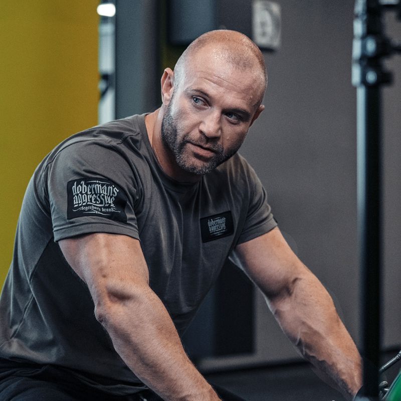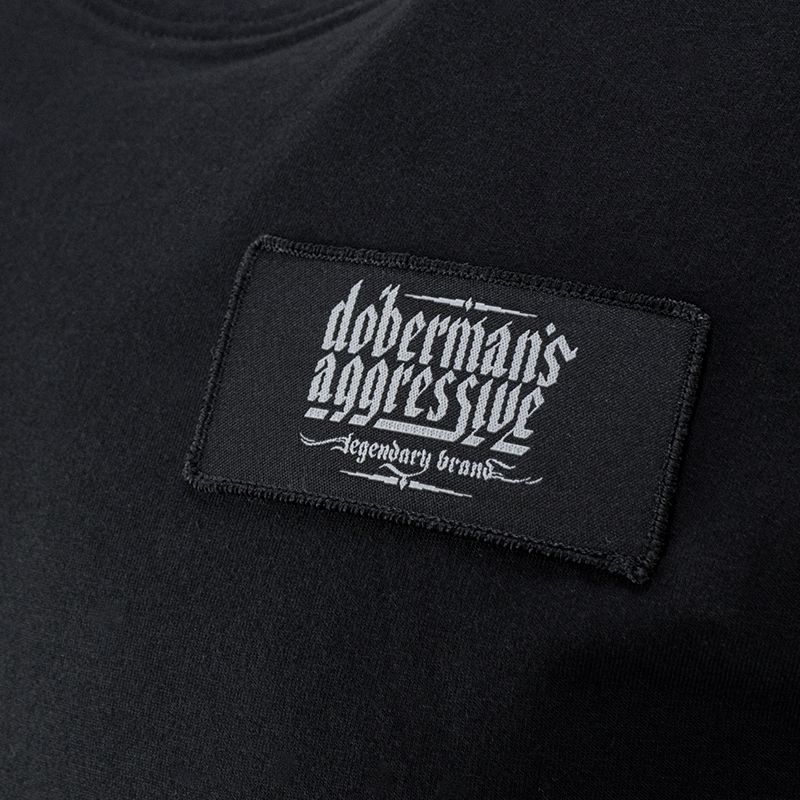 Štandardné pánske tričko, ktoré je vyrobené z kvalitnej bavlny. Na ľavej strane hrudi je čierna nášivka Doberman's Aggressive. Na rukáve je všitá menšia ceduľka s logom značky, čierna nášivka na pravom rukáve s nápisom Doberman's Aggressive.