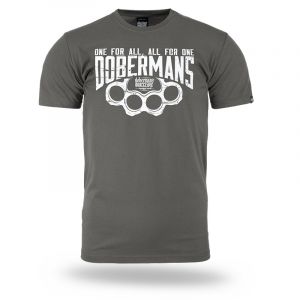 Tričko je vyrobené z bavlny s hmotnosťou 200g. Na ľavom rukáve je malá ceduľka s logom Doberman's Aggressive. Na prednej strane trička je veľký nápis DOBERMANS s nápisom One For All, All For one. Celok je zakončený vzorom boxera a logom značky.