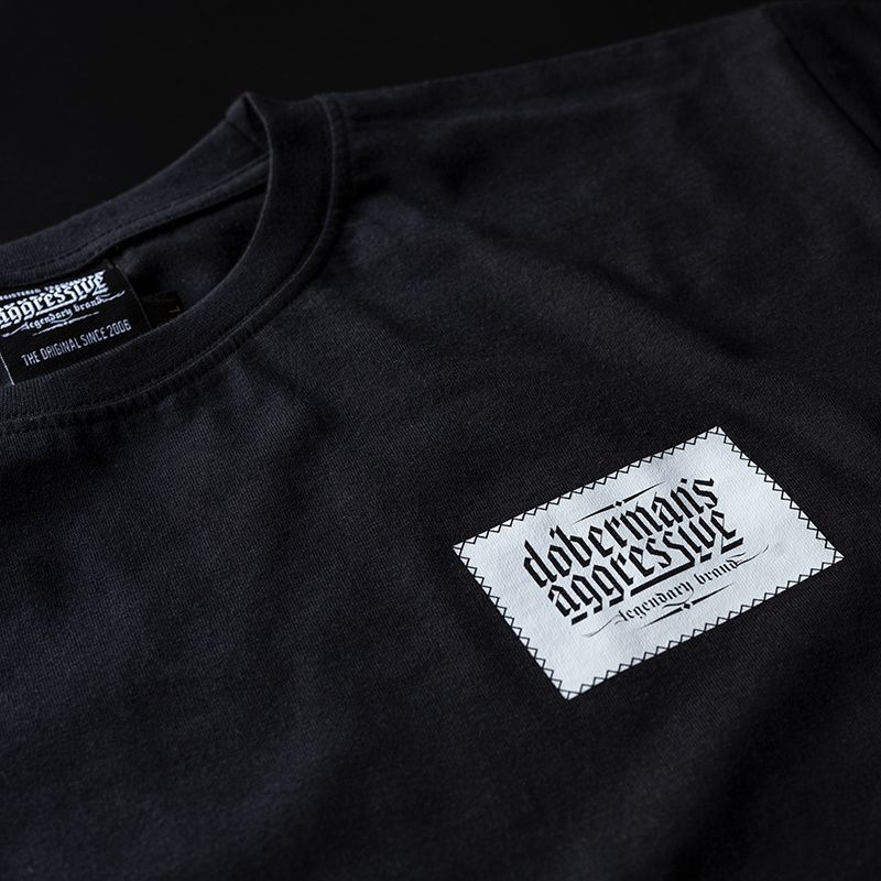Tričko je vyrobené z bavlny s hmotnosťou 200g. Na ľavom rukáve je malá ceduľka s logom Doberman's Aggressive. Na prednej strane trička je logo značky, ktoré je vytvorené ako imitácia nášivky šité tenkou niťou.