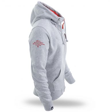 Mikina s kapucňou na zips je vyrobená z vysoko kvalitnej bavlny, patrí do radu Offensive Premium. Oblečenie z tejto kolekcie sa vyznačuje klasickými vzormi, nadčasovými strihy a prémiovou kvalitou. Mikina je zakončená pevnými šnúrkami s kovovými zakončeniami Doberman's. Na hrudi a ramene sa nachádza nášivka, na zadnej strane gumový symbol. Všetky doplnky sú s logom Doberman's Aggressive.