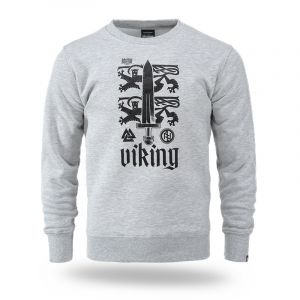 Pánska mikina obliekaná cez hlavu. Na ľavom rukáve je malá ceduľka s logom značky. Dolná časť mikiny a rukávov je zakončená širokým sťahovacím lemom. Na prednej strane je potlač zobrazujúca veľký meč na pozadí dvoch heraldických levov, obklopený symbolmi inšpirovanými severskou mytológiou a nápisom „Viking“. Dizajn odkazuje na silu a dedičstvo severných bojovníkov.
