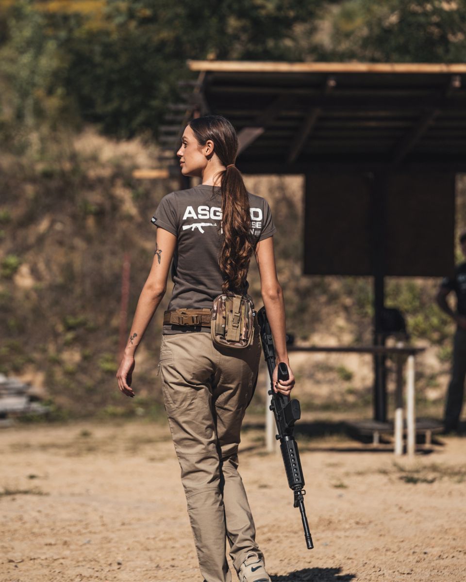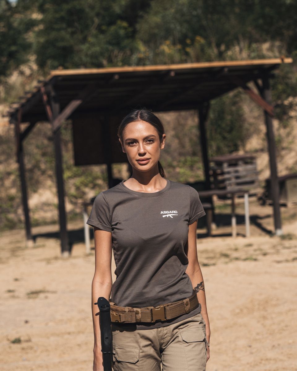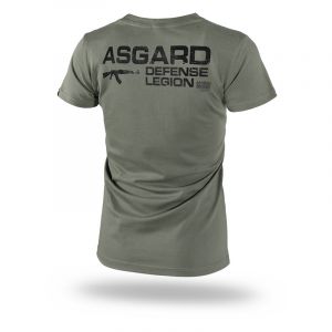 Dámske tričko v mierne vypasovanom strihu. Na ľavom rukáve je umiestnená malá ceduľka s logom značky. Na zadnej strane potlač „Asgard Defense Legion”.