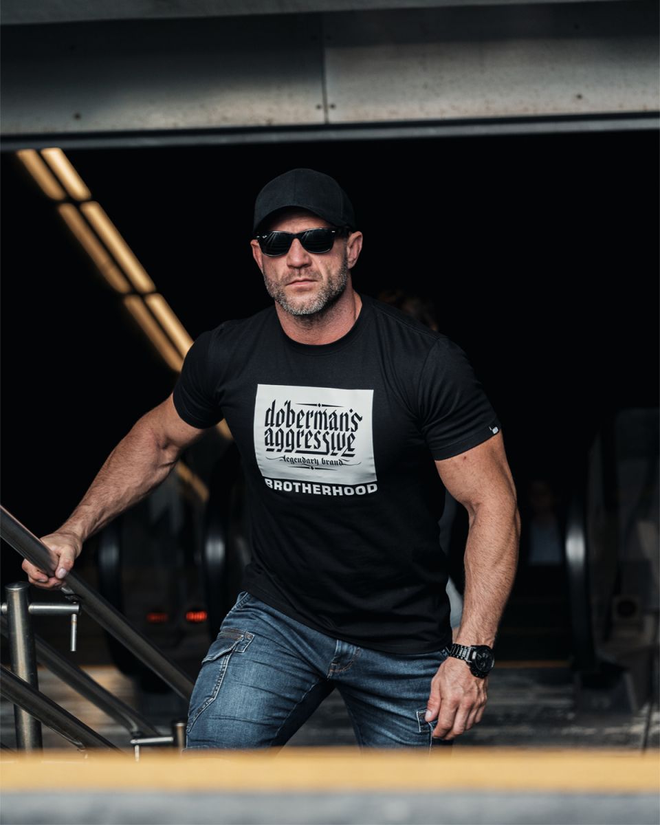 Pánska mikina obliekaná cez hlavu. Na ľavom rukáve je malá ceduľka s logom značky. Dolná časť mikiny a rukávov je zakončená širokým sťahovacím lemom. Na prednej strane mikiny potlač Doberman´s Aggressive Brotherhood.