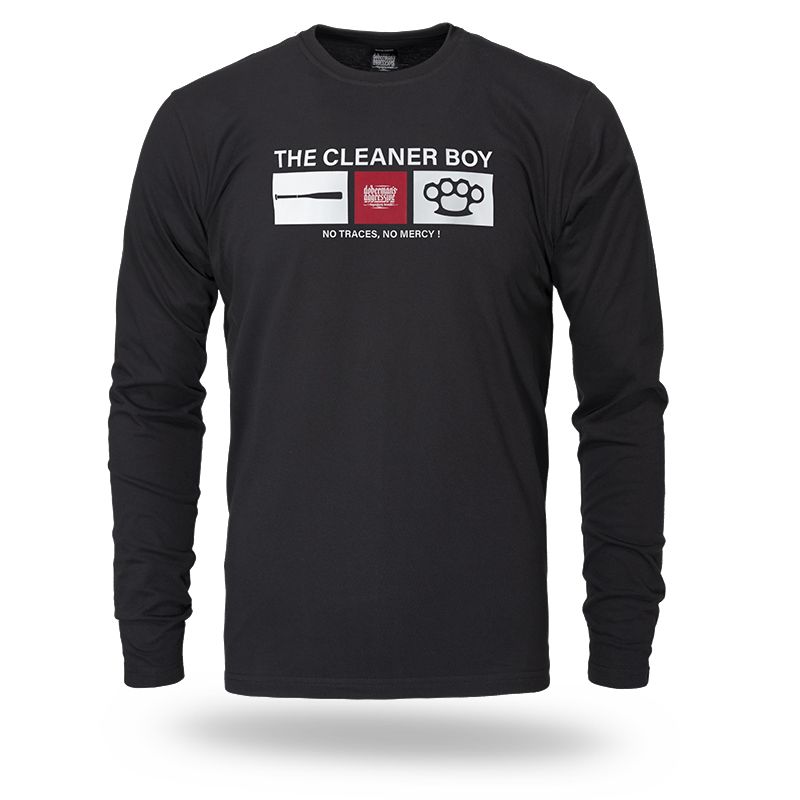 Pánske tričko klasického strihu s dlhým rukávom zo 100% bavlny.Na ľavom rukáve je malá ceduľka s logom Doberman's Aggressive. Na hrudníku veľká potlač Cleaner boy – No traces,no mercy!