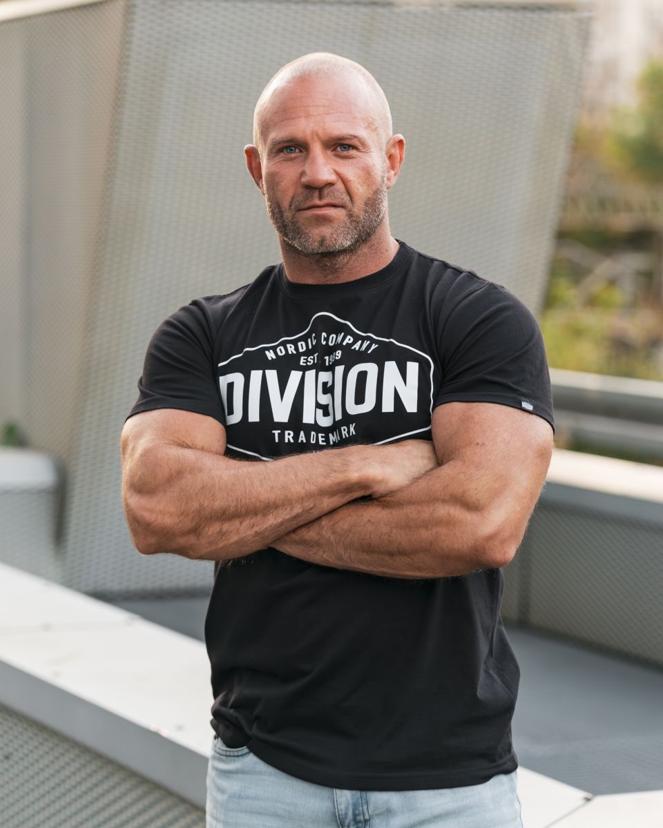 Pánske tričko klasického strihu s dlhým rukávom zo 100% bavlny.Na ľavom rukáve je malá ceduľka s logom Doberman's Aggressive. Na hrudníku veľká potlač Division.