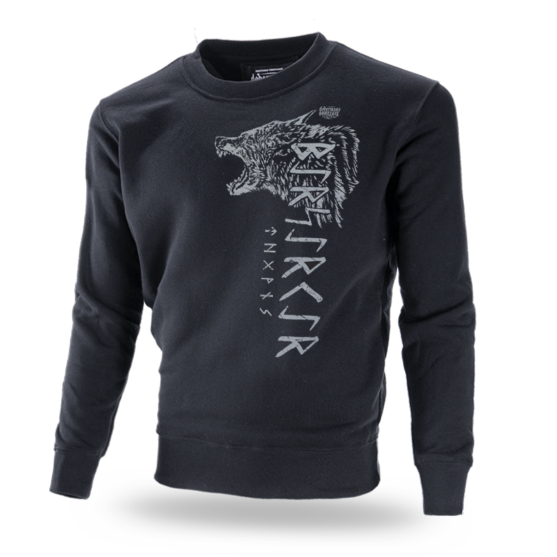 Pánska mikina obliekaná cez hlavu. Na ľavom rukáve je malá ceduľka s logom značky. Dolná časť mikiny a rukávov je zakončená širokým sťahovacím lemom. Na prednej strane je vzor, ktorý zobrazuje hlavu vlka s otvorenou papuľou. Celok dopĺňa nápis BERSERKER a malé logo značky.