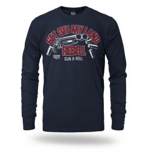 Pánske tričko klasického strihu s dlhým rukávom zo 100% bavlny.Na ľavom rukáve je malá ceduľka s logom Doberman's Aggressive. Na hrudníku veľká potlač Get Off My Land REBELL Gun & Roll.