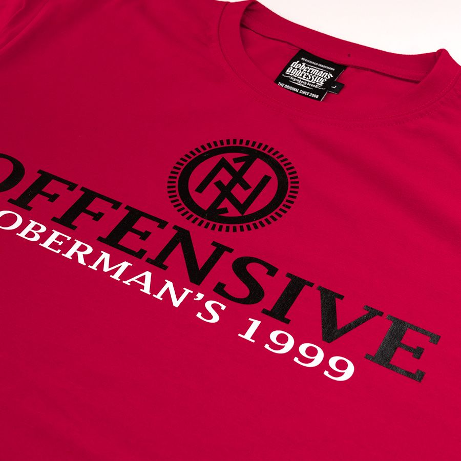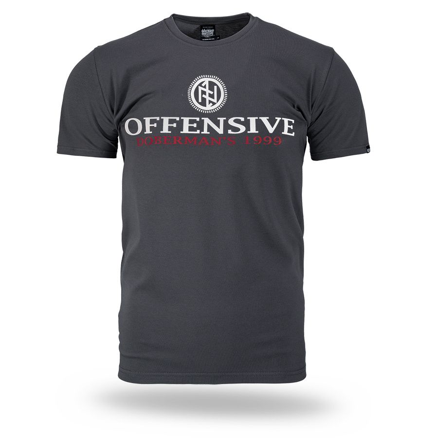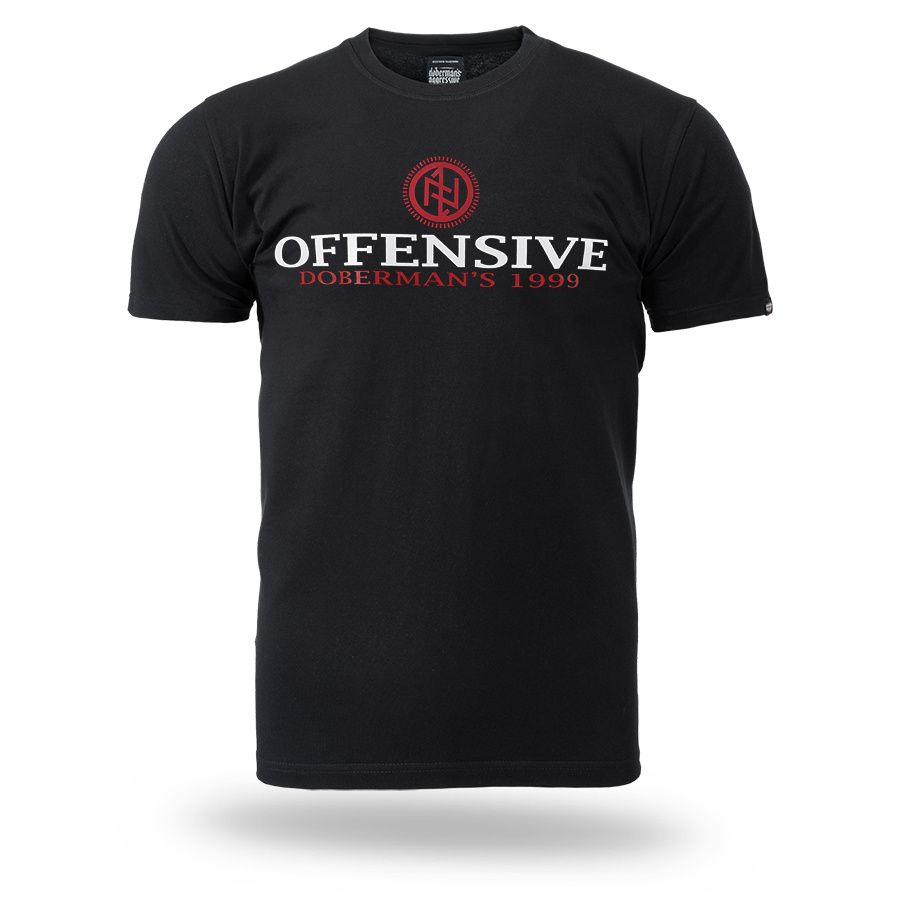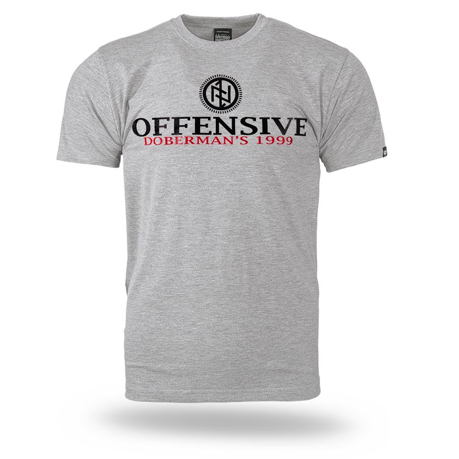 Pánske tričko zo 100% bavlny klasického strihu s krátkym rukávom. Na ľavom rukáve je umiestnená malá ceduľka s logom značky. Na hrudníku veľká potlač Offensive Doberman´s 1999.