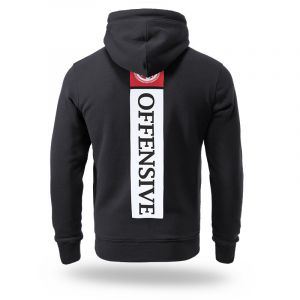 Mikina s kapucňou od Dobermans Aggressive je vyrobená z príjemnej, pohodlnej bavlny, zakončená širokými, elastickými sťahovacími lemami ako v páse, tak aj na rukávoch. Na dvojito prešitej kapucni je veľké logo Doberman's Aggresive. Na zadnej strane je veľká potlač "OFFENSIVE", nad ktorou je malé logo značky. Na prednej strane minimalistický detail v podobe malého loga na hrudi.