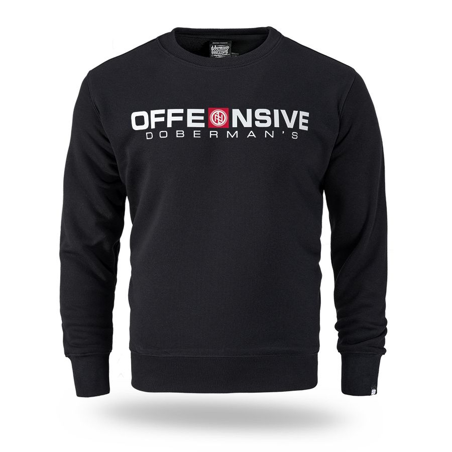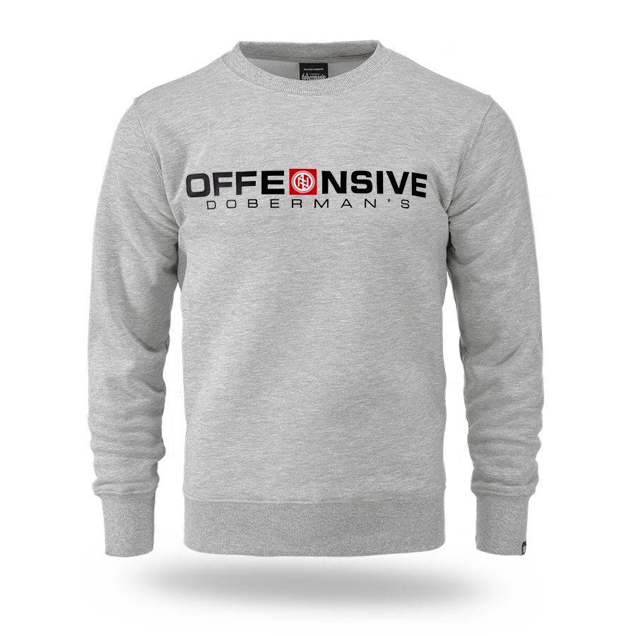 Klasická pánska mikina. Na ľavom rukáve je malá ceduľka s logom značky. Dolná časť mikiny a rukáve sú zakončená širokým sťahovacím lemom. Na hrudníku veľká potlač Offensive Doberman´s.