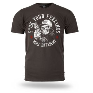 Pánske tričko zo 100% bavlny klasického strihu s krátkym rukávom. Na ľavom rukáve je umiestnená malá ceduľka s logom značky. Na hrudníku veľká potlač F*ck Your Feelings – Built Different.