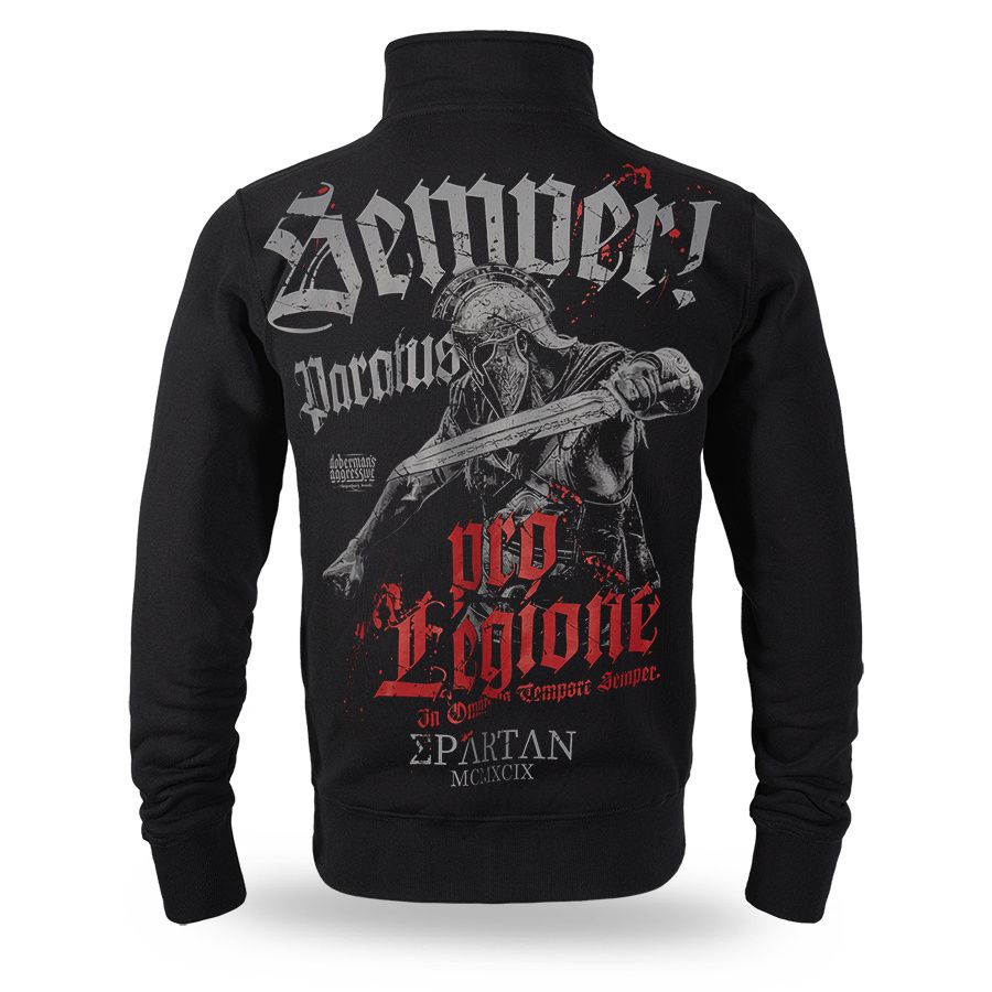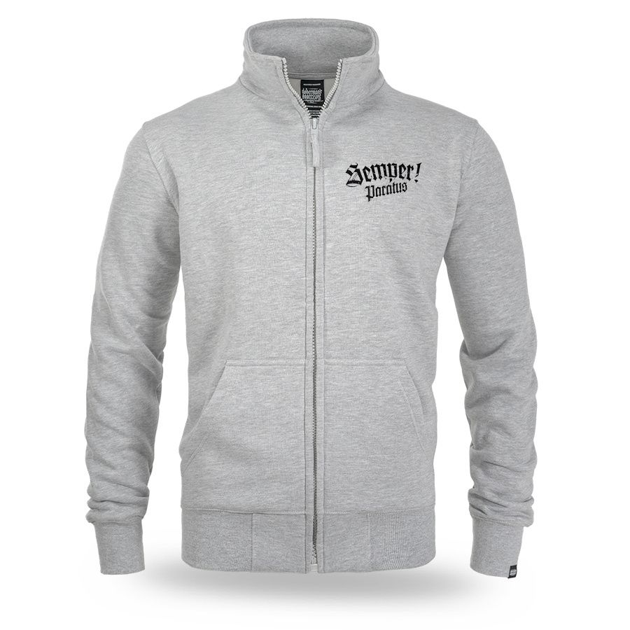 Mikina na zips so sťahovacími lemami s dvoma vreckami na prednej strane zo 100% bavlny. Vpredu a vzadu potlač Semper Paratus.