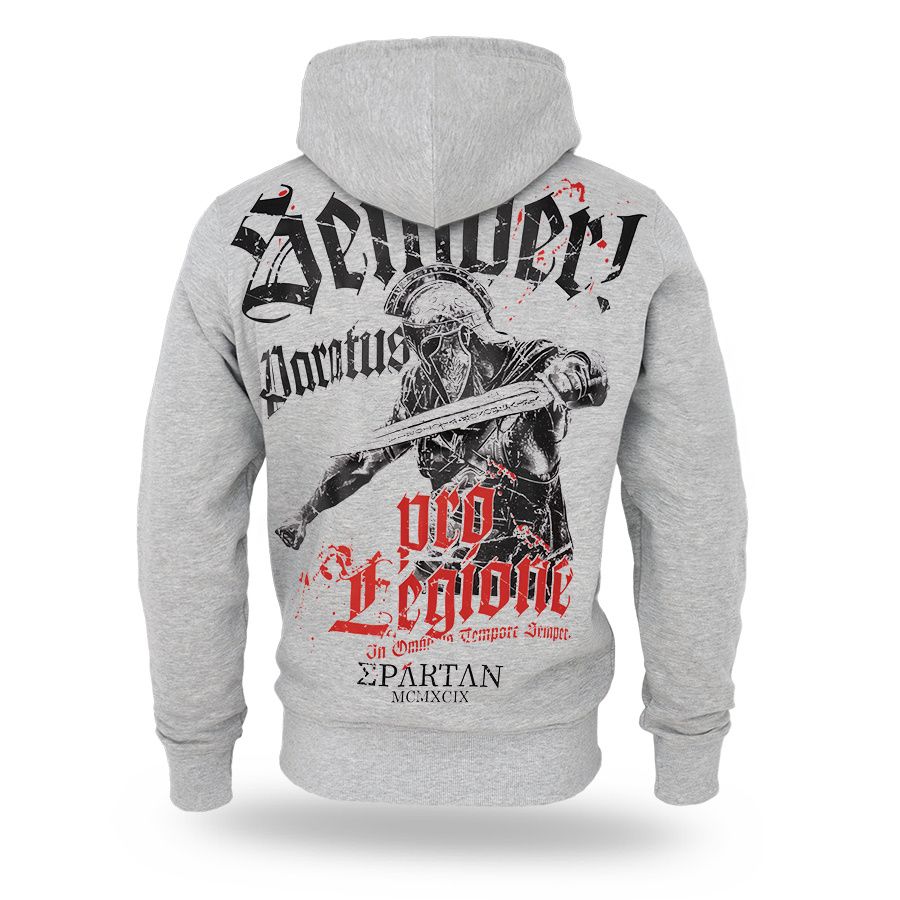Mikina s kapucňou so zapínaním na zips. Mikina je vyrobená z vysoko kvalitnej bavlny, zakončená sťahovacími lemy a s dvoma vreckami na prednej strane. Na ľavom rukáve je malá ceduľka s logom značky. Kapucňa je ozdobená širokou šnúrkou a kovovými zakončeniami s logom značky. Vpredu a vzadu potlač Semper Paratus.