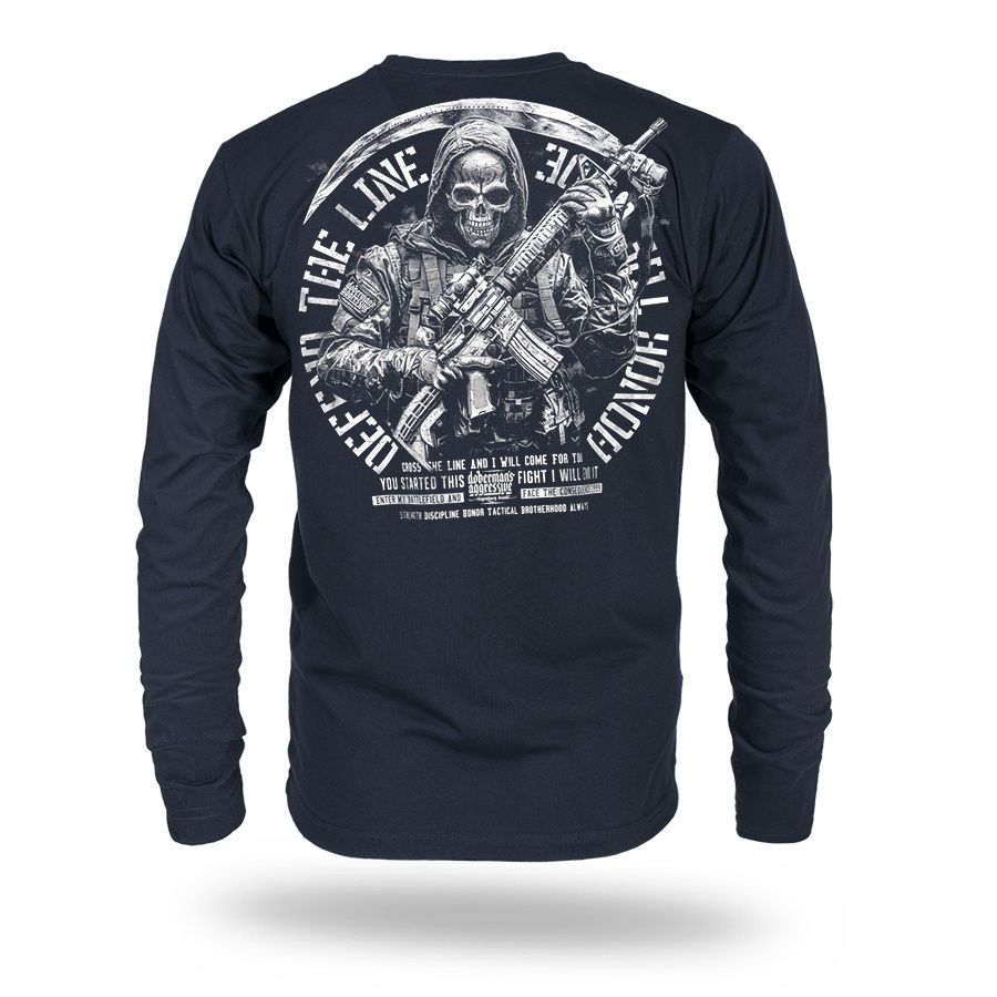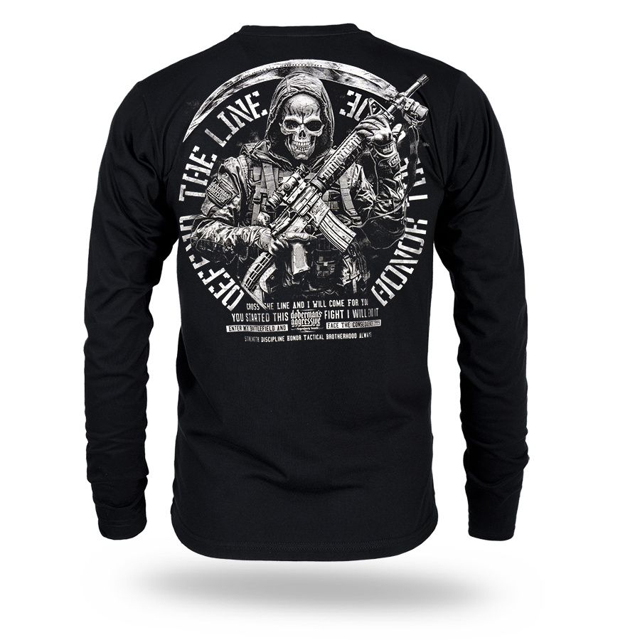 Pánske tričko klasického strihu s dlhým rukávom zo 100% bavlny.Na ľavom rukáve je malá ceduľka s logom Doberman's Aggressive.