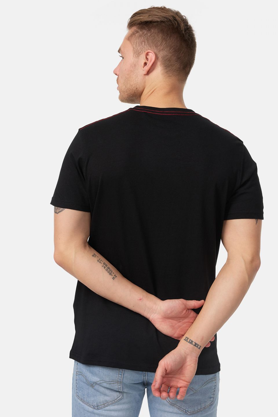 - Tričko s dvojfarebným logom na hrudi a kontrastným ozdobným prešívaním na ramene.