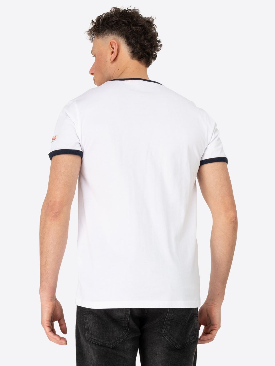 - Tričko s kontrastnou potlačou na prednej strane. Manžety na výstrihu a lemoch rukávov sú pruhované a farebne kopírujú potlač. Na bočnom šve je tkaná etiketa.