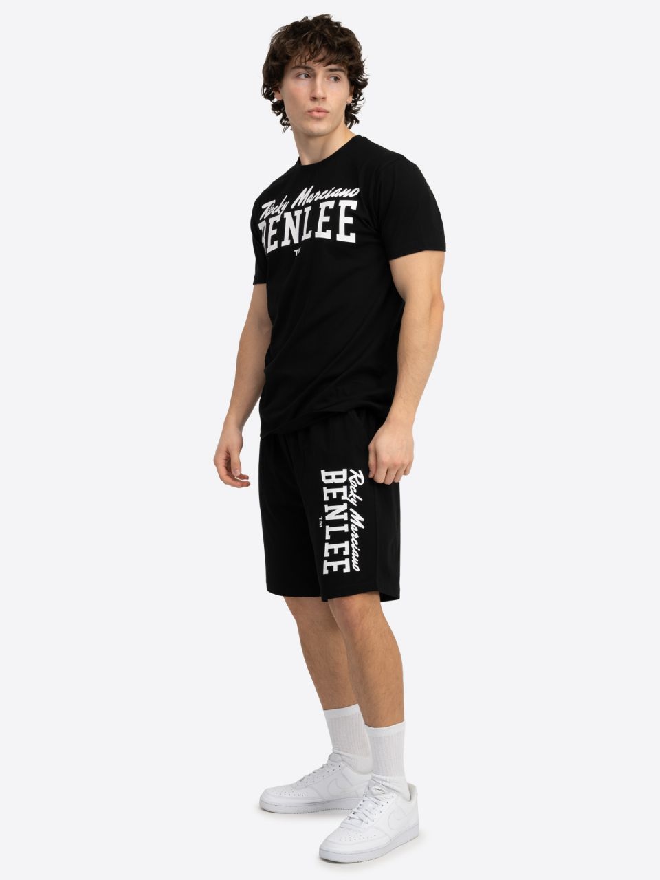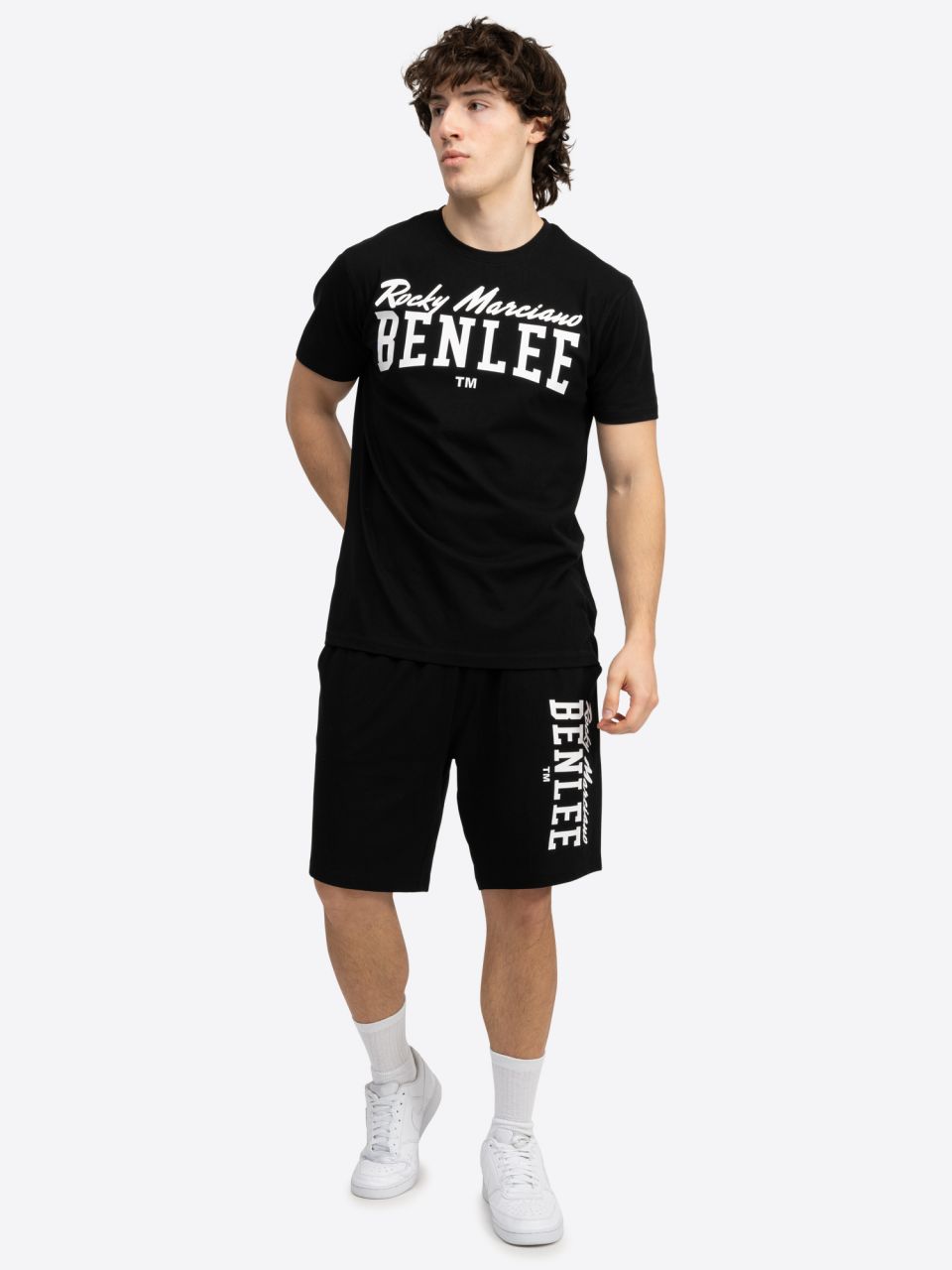 - Set pozostáva z trička a šortiek. Nápis BENLEE je vytlačený veľkým písmom na prednej strane trička v kontrastnej farbe. Výstrih má elastickú rebrovanú manžetu. Nohavice s výraznou potlačou loga majú elastický pás a dajú sa nastaviť šnúrkou. Nohavice majú tiež dve vrecká vpredu a jedno našité vrecko vzadu.