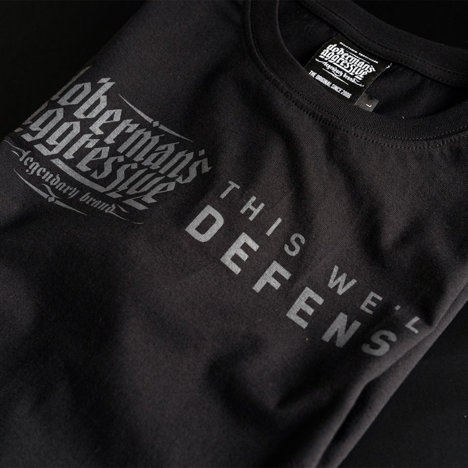 Klasické pánske tričko s dlhým rukávom zo 100% bavlny zakončené širokým sťahovacím lemom pri krku. Na prednej strane trička je logo značky s nápisom THIS WE’LL DEFENSE.