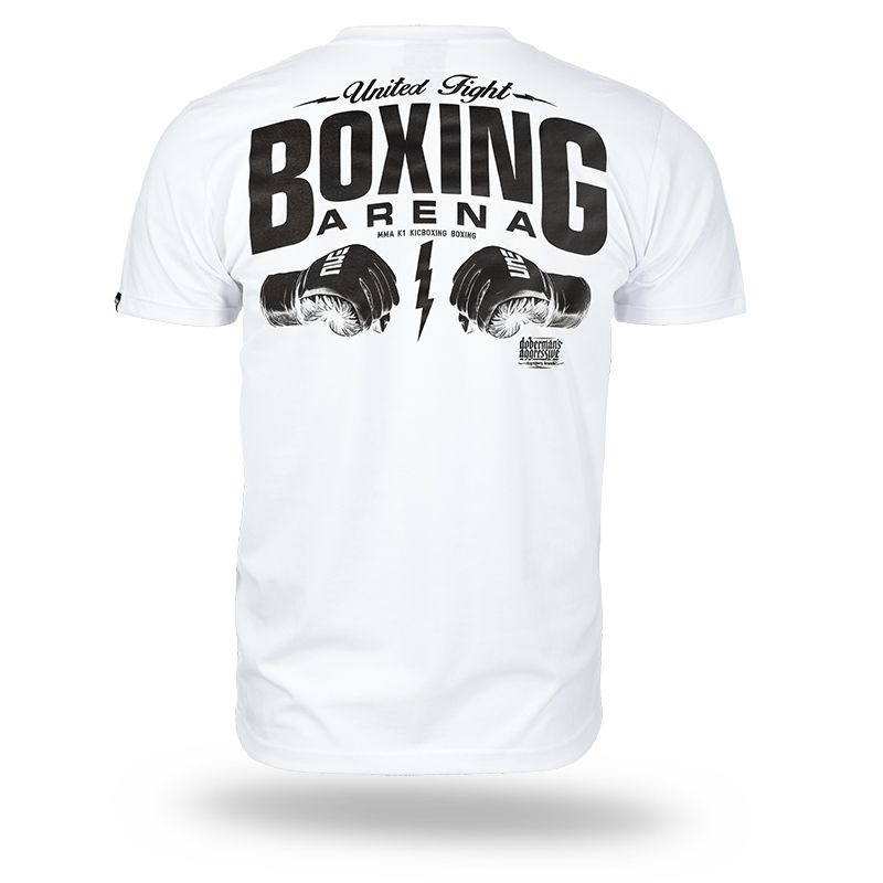 Pánske tričko zo 100% bavlny klasického strihu s krátkym rukávom. Na ľavom rukáve je umiestnená malá ceduľka s logom značky. Vpredu a vzadu potlač Boxing Arena.