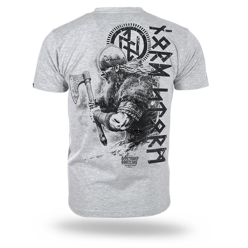 Tričko je vyrobené z bavlny s hmotnosťou 200g. Na ľavom rukáve je malá ceduľka s logom Doberman's Aggressive. Na zadnej strane je veľká potlač bojovníka so sekerou a runovými symbolmi. Na prednej strane minimalistický potlač Storm.